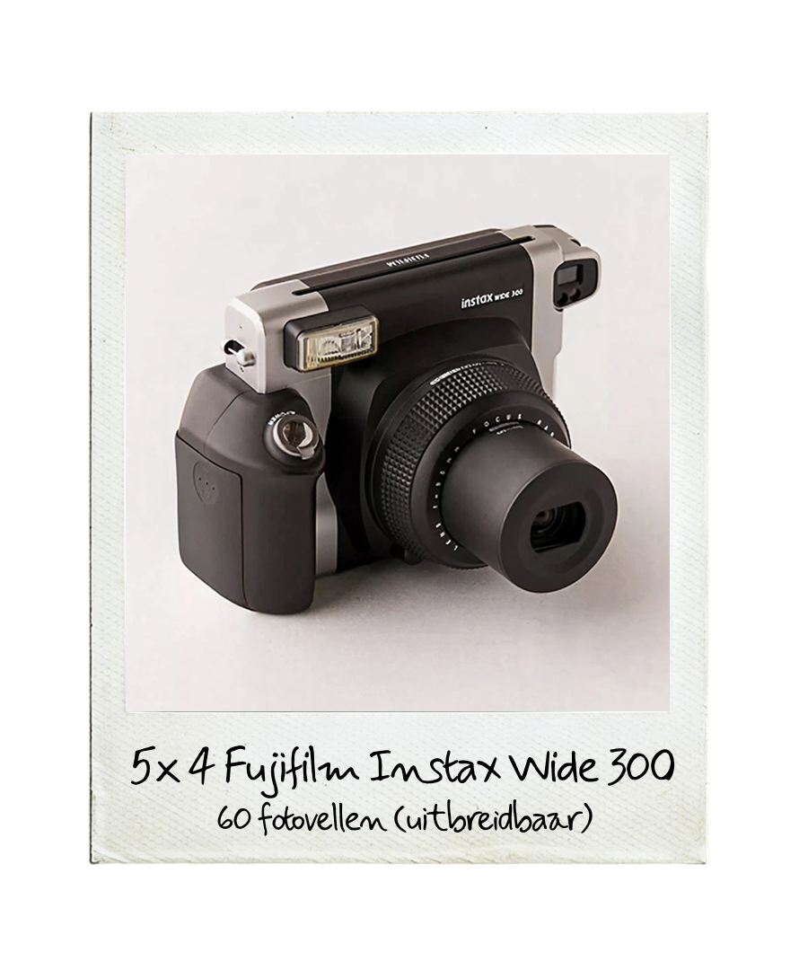 - 5 Instax Wide polaroidcamera’s in een stevige retourbox.