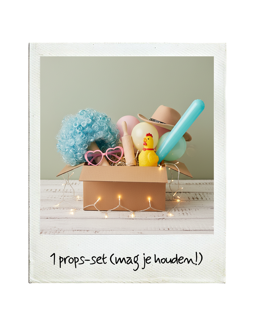Hoe werkt het? Jullie gasten worden verdeeld in teams. Elk team krijgt een Instax Wide camera, props en 10 gekke foto-opdrachten. In 30 tot 60 minuten gaan ze op jacht naar de meest originele foto's. Alle Polaroids worden vervolgens op de banner geprikt, waarna het bruidspaar twee winnaars kiest: ‘Meest Origineel’ en ‘Mooiste Foto’.