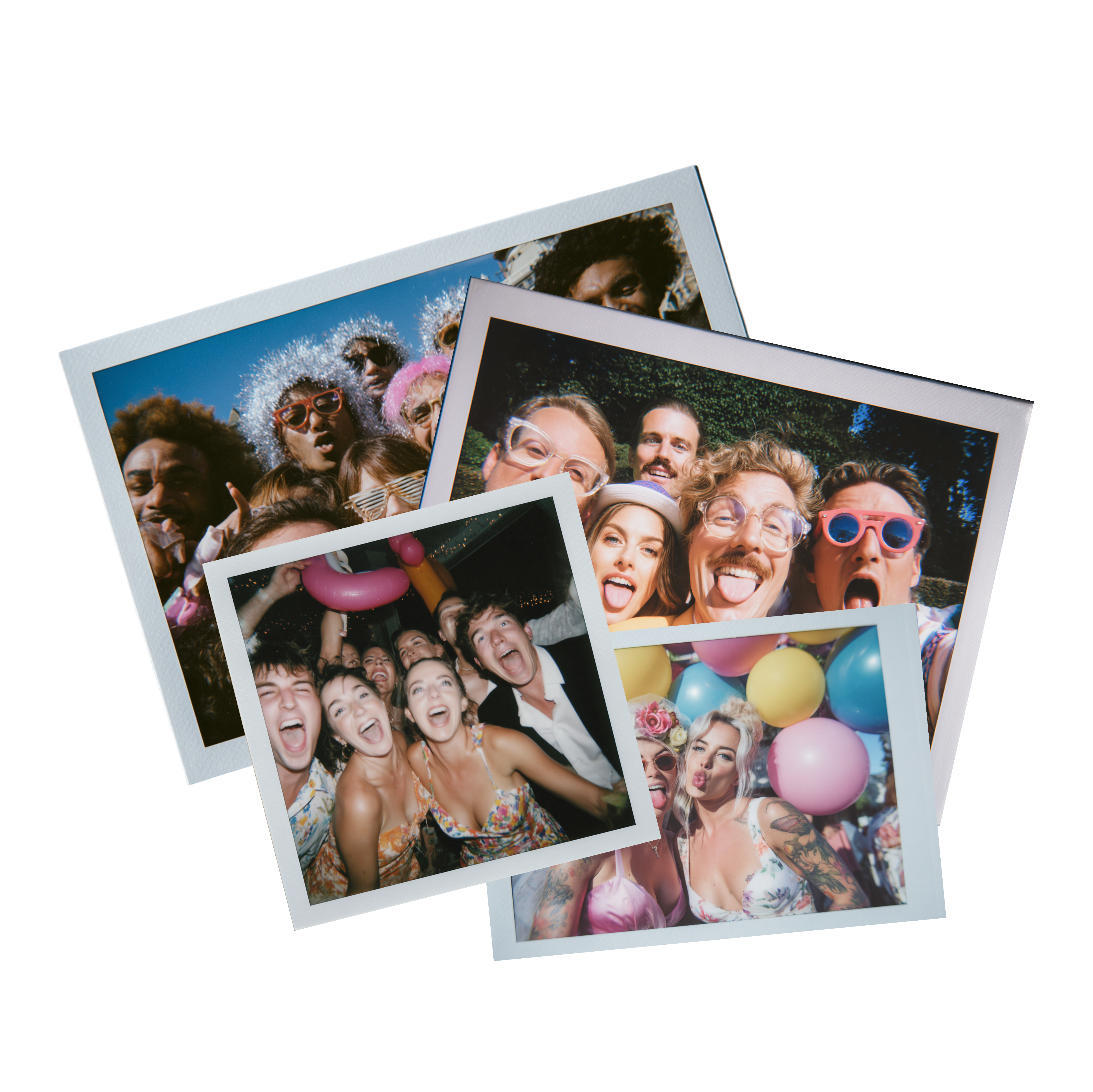 Wil je de Polaroids meegeven als aandenken? Onze Stickerframe Instax Wide is de perfecte oplossing! Hiermee personaliseer je de foto met jullie boodschap of naam, zodat elke gast een uniek geschenk ontvangt.